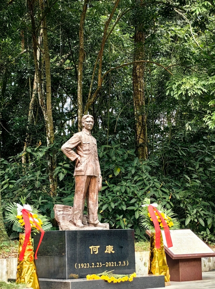 屈总干事向原中国农业部部长、中国热科院院长何康雕像敬献花篮,深切缅怀并致敬中国热作事业奠基人。©粮农组织/屈冬玉