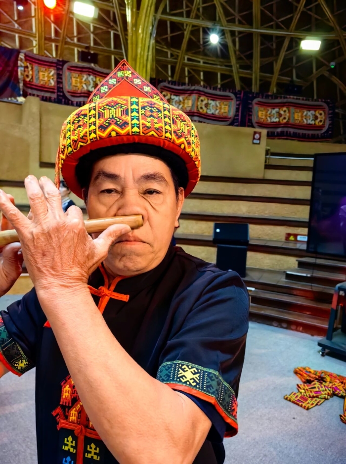 黎族非遗鼻笛子独奏。©粮农组织/屈冬玉