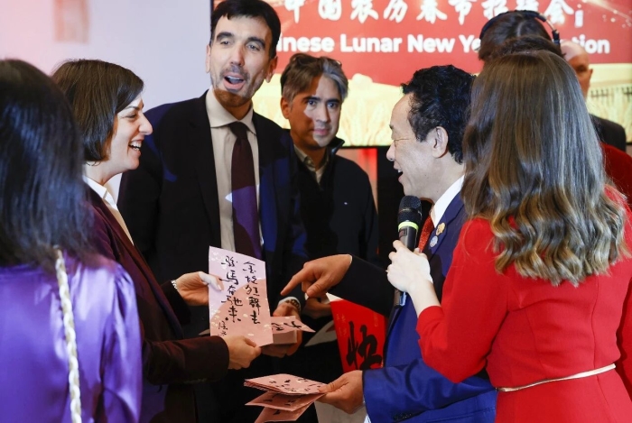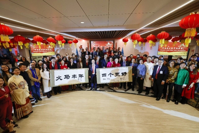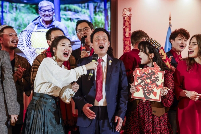 在热烈的掌声中,屈总干事发表了热情洋溢的新春致辞。他表示,春节自古承载着人们对和平与安宁的美好向往。如今,全球已有近20个国家将春节作为法定节假日,全球约1/5的人口以不同形式庆祝农历新年。春节成为联合国假日,充分彰显了中华文明对世界文化多样性的独特贡献,其所蕴含的价值理念与人文关怀,跨越国界和文化差异,赢得世界各国人民的广泛共鸣。