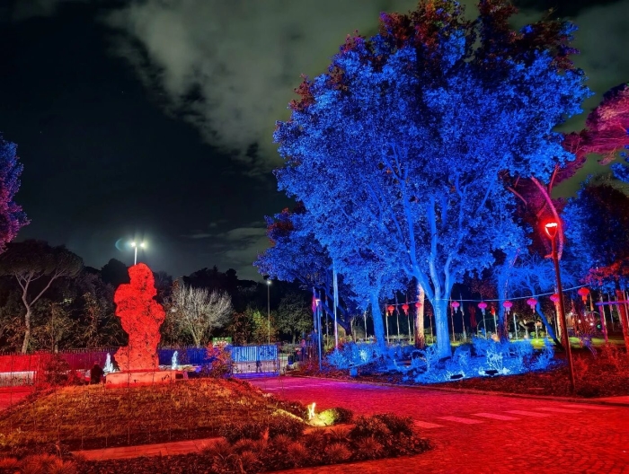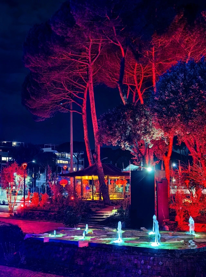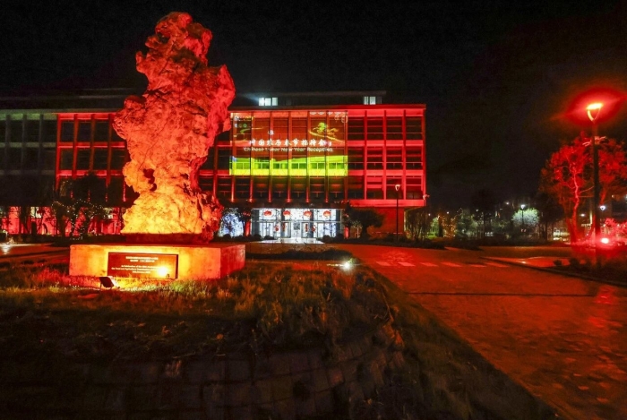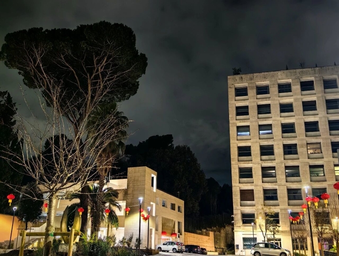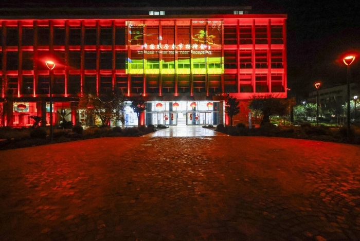 作为连续第三年举办的中国农历春节主题活动,本届招待会延续庄重热烈、开放包容的基调,进一步深化文明互鉴、和合共生的节日氛围。夜幕下的粮农组织总部张灯结彩、火树银花,洋溢着浓厚的新春气息。主会场、花园区域和新建成的停车楼以“中国红”为主色调装点一新,大红灯笼高高悬挂,红色“福”字熠熠生辉,马年主题动态投影点亮主楼。竹亭之间、喷泉之畔、菊花石旁、树木枝头,在中国红的灯光映衬下更显喜庆祥瑞;处处张贴的春联与马年主题装饰,将“火马奔腾、万象更新”的新春意象融入新粮农大家庭的共同空间,传递团圆、希望与祝福。