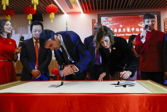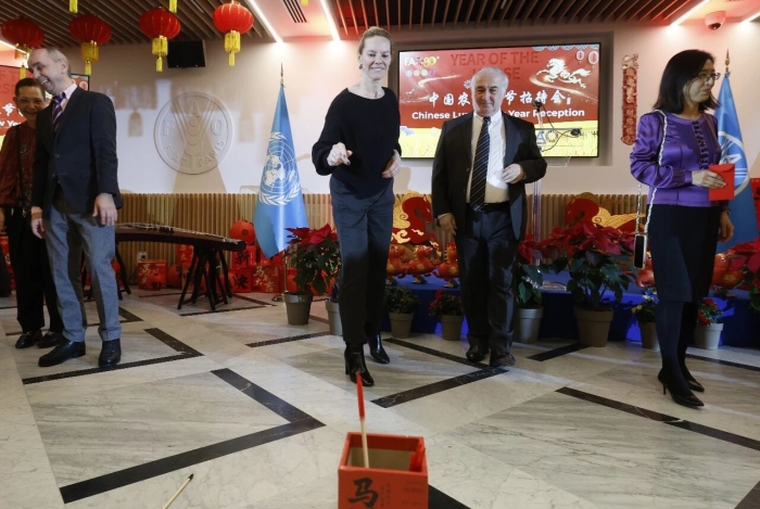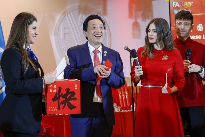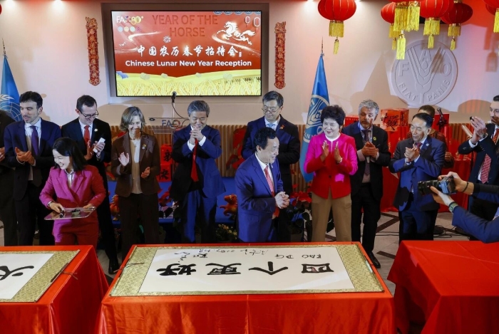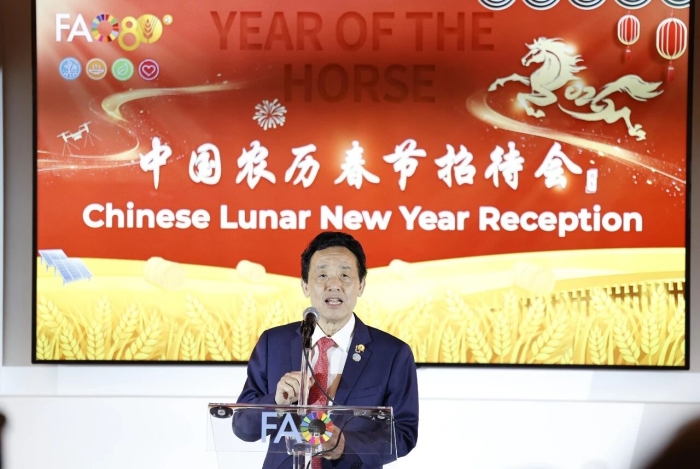 2026年2月11日,罗马——在中国农历丙午火马年春节即将到来之际,联合国粮食及农业组织(粮农组织)今天在罗马总部隆重举办2026年“中国农历春节招待会”。粮农组织总干事屈冬玉博士与各成员国常驻代表、多国驻意大利使节、意大利政府代表、国际组织负责人、粮农组织高管及员工代表欢聚一堂,共迎新春、共叙友谊、共谋发展。