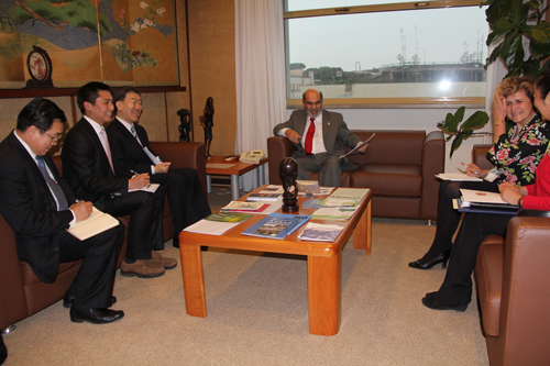 牛盾大使首先向格拉济阿诺总干事转达了农业部韩长赋部长的问候,对其为FAO同中国合作所给予的关注与支持表示感谢,并表示,中国支持其连任FAO总干事,并相信在其领导下FAO必将为世界粮食安全作出更大的贡献。