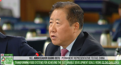 广大使在发言中指出,在新冠疫情背景下,围绕“粮食系统转型以实现可持续发展目标”主题,共同探讨促进粮食系统转型、促进可持续发展非常迫切,意义非常重大。