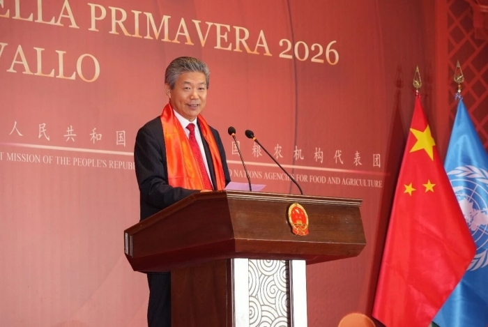 2026年2月9日,在中国农历马年春节即将到来之际,常驻联合国粮农机构代表团与驻意大利使馆在罗马联合举办新春招待会。常驻联合国粮农机构代表张陆彪大使、驻意大利使馆临时代办李小勇,联合国粮农组织总干事屈冬玉博士、国际议联意中友好小组主席洛普雷亚特与各国各界代表出席,辞旧迎新,共庆佳节。
