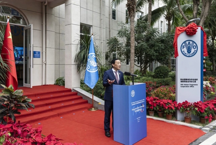 屈冬玉总干事在联合国粮农组织海南项目合作办公室(FAO-HAINAN PCO)签约揭牌仪式上的致辞