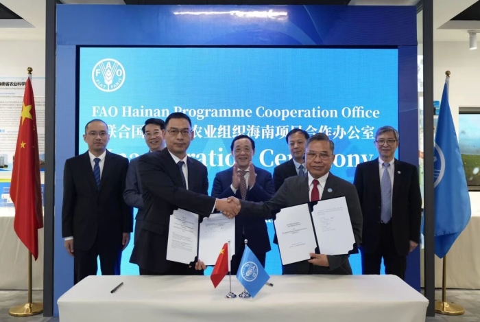 很高兴出席联合国粮食及农业组织海南项目合作办公室(FAO-HAINAN PCO)揭牌仪式并调研海南自贸港框架下的农业农村工作,心情异常激动!与大家共同见证联合国粮农组织、中国政府与海南省有关部门携手促成的这一重要的历史性成果正式落地。屈总干事出席联合国粮农组织海南项目合作办公室签约揭牌仪式并致辞。 谨向中国农业农村部、海南省人民政府、海南省农业农村厅、三亚市人民政府及领导们致以诚挚谢意,历史将永远记住中国推动构建人类命运共同体和国际开放合作所展现的远见卓识、坚定意志、坚决行动和开阔视野。 海南项目合作办公室的成立彰显了联合国粮农组织与中国政府以制度化、长效化合作机制深耕热区农业,开放创新、合作共赢的战略远见,前瞻布局与行动导向。联合国粮农组织海南项目合作办公室签约揭牌仪式。©粮农组织/Qilai Shen屈总干事见证联合国粮农组织与中方签署合作文件。©粮农组织/Qilai Shen 海南气候独特、特产丰饶、人文荟萃、优势明显,占据中国热区农业粮食体系版图的战略要冲。海南依托典型热带气候与丰富的生物多样性资源,特别是在崖州湾科技城的辐射带动下,成功汇聚了大批国家级科教机构,正迅速发展成为国际热区农业创新与发展的新核心、中国与世界的新客厅、国际农业与食物产研学合作交流的大舞台。海南五指山是中国热带雨林生态系统的重要代表区域,拥有丰富的自然资源和独特的生态景观。©粮农组织/屈冬玉国家雨林公园内的仙女潭水倒影出中国地图(屈总干事发现)。©粮农组织/屈冬玉