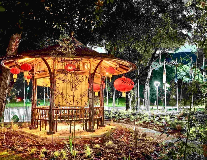 作为连续第三年举办的中国农历春节主题活动,本届招待会延续庄重热烈、开放包容的基调,进一步深化文明互鉴、和合共生的节日氛围。夜幕下的粮农组织总部张灯结彩、火树银花,洋溢着浓厚的新春气息。主会场、花园区域和新建成的停车楼以“中国红”为主色调装点一新,大红灯笼高高悬挂,红色“福”字熠熠生辉,马年主题动态投影点亮主楼。竹亭之间、喷泉之畔、菊花石旁、树木枝头,在中国红的灯光映衬下更显喜庆祥瑞;处处张贴的春联与马年主题装饰,将“火马奔腾、万象更新”的新春意象融入新粮农大家庭的共同空间,传递团圆、希望与祝福。