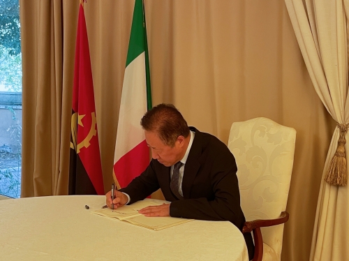 当地时间7月12日,中国常驻联合国粮农机构代表、大使广德福赴安哥拉驻意大利大使馆悼念前总统多斯桑托斯。