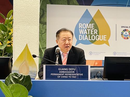 本次罗马水资源对话会是联合国2023年水事会议的一次特别预备活动,也是FAO提升水资源综合治理而实施的一项重要举措。对话会旨在促进各方重视对水资源在实现可持续发展目标中所发挥的作用,实现水资源部门与农业部门用水领域深度对接,探讨《国家水资源路线图》及各国自主制定的战略举措。FAO总干事屈冬玉、联合国主管经济和社会事务的副秘书长李军华及中国、美国、荷兰、摩洛哥、德国、南非、瑞士、乌兹别克斯坦等多国常驻联合国粮农机构大使、代表或副代表出席活动并讲话。