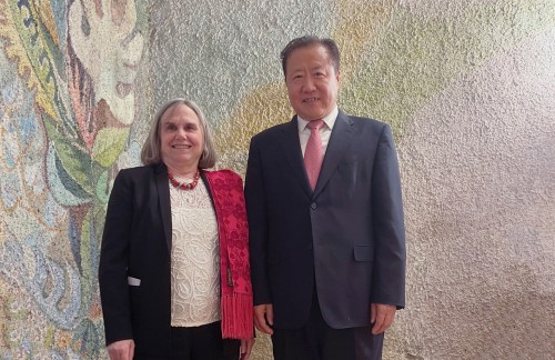 当地时间5月15日,中国常驻联合国粮农机构代表、大使广德福应邀出席了由洛克菲勒基金会全球营养安全执行主任、世界粮食计划署前任执行干事凯瑟琳·贝尔蒂尼(Catherine Bertini)女士举办的招待会。