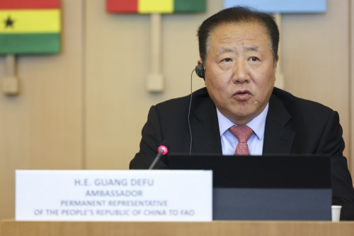 当地时间5月22日上午,中国常驻联合国粮农机构代表、大使广德福应邀出席联合国粮食及农业组织(以下简称“FAO”)举办的全球重要农业文化遗产(GIAHS)授牌仪式及展览活动并致辞。