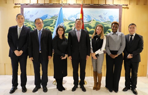 当地时间11月27日,中国常驻联合国粮农机构代表、大使广德福应约会见了世界粮食计划署(以下简称“WFP”)校餐司司长卡门·布尔巴诺一行。