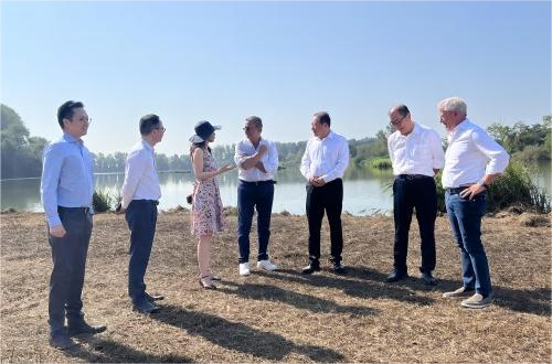 在Simbiosi公司总部,广德福听取CEO皮耶罗·曼佐尼关于以现代技术创造土地再生发展理念的介绍。该理念通过大力开发可再生能源利用,促使工业区成功转型为绿色发展和保持生物多样性的循环体系。广德福实地考察了其农业创新中心,25年来通过种植超过一百万株植物,重现了一千年前波河河谷土地原貌,生物多样性增加了170%,达到了人与自然和谐共生的成果。广德福详细询问了欧盟关于污水处理与利用、农业生态环境保护与恢复方面的支持政策,对其在农业循环利用与生物多样性恢复上取得的成就表示赞赏,并建议其申请加入联合国国际重要湿地名录。广德福表示,中意两国农业有很多相似之处,中国当前正秉持可持续发展理念,大力发展绿色农业,鼓励曼佐尼加强与中国同行交流合作,中国粮代处愿意支持其公司参加中国国际进口博览会,为其与中国农业企业合作牵线搭桥。