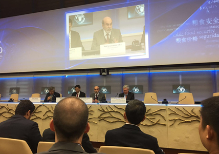 2017年3月27日,粮农组织(FAO)总干事若泽?格拉济阿诺?达席尔瓦和国际食物政策研究所所长樊胜根在FAO总部共同发布《2017年全球粮食政策报告》。中国常驻联合国粮农机构代表牛盾大使出席会议。